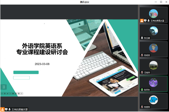 (通讯员:张云峰)3月8日晚,3377体育英语教研室举行线上视频会议,围绕英语专业“一流课程”“思政示范课程”建设开展讨论交流。学院陈明芳经理、别尽秋副经理、邓军涛副经理,E+实验区办公室副主任凃朝莲教授,省(校)级一流课程(含立项建设课程)、校级思政示范课程(含立项建设课程)负责老师及团队成员参加会议。研讨会由英语教研室主任王伟老师主持。