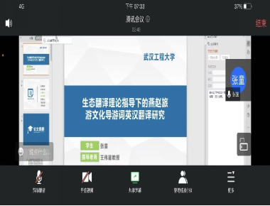 随后,公司硕士生指导教师与外国语言文学研究生、翻译硕士专业学位研究生分成七组,通过线下与线上相结合的形式开展研究生创新学术论坛。每个小组由4名评议老师及10到12位硕士研究生组成。评议组长分别由何广惠、邓军涛、凃朝莲、汪桂芬、陈玢、程建山和张云峰老师担任。