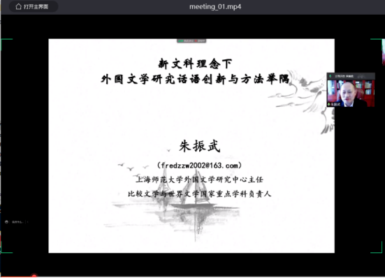 上海师范大学博士生导师朱振武教授的发言主题为“外国文学研究话语创新理念与方法举隅”。朱振武教授结合“新文科”的时代背景,基于自身丰富的文学研究经验,对我国外国文学研究过程中所存在的问题进行了准确分析,对学术规划、项目报道中的八个要素提供了可资借鉴的经验。朱教授既有对前沿问题的关注,也有对经典问题的反思,概括妙语连珠、高屋建瓴,为不同学科的学者都提供了重要的思维方法。