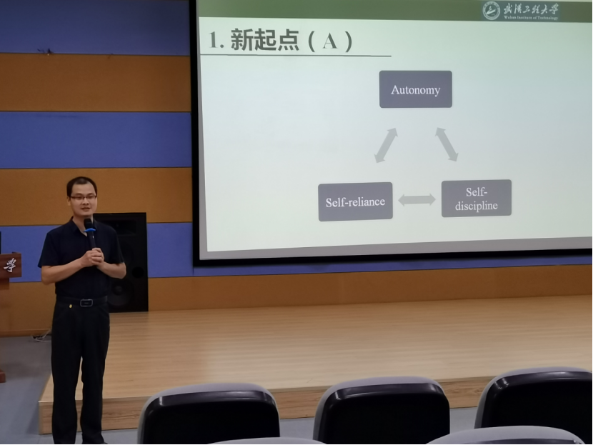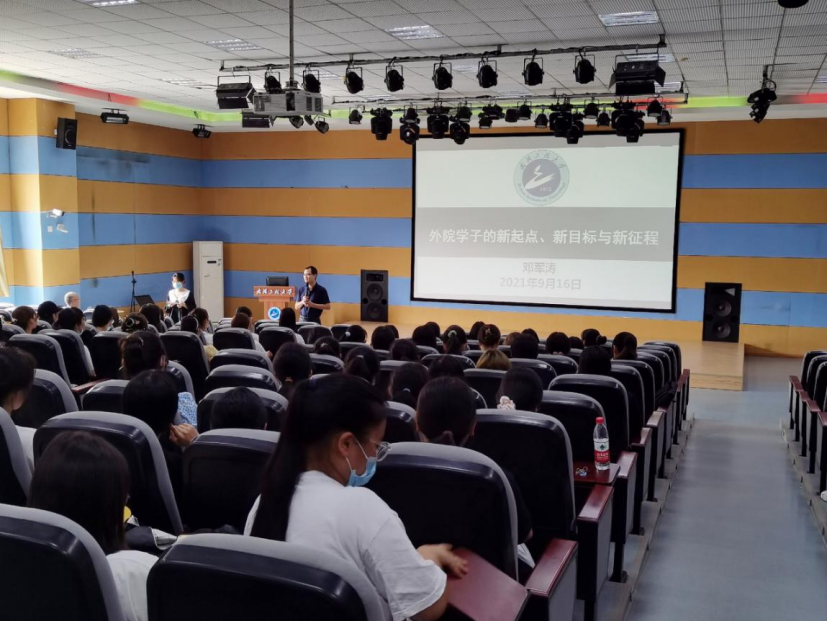 邓军涛老师的报告以“外院学子的新起点、新目标与新征程”为主题,从自主、自律、自立和宽度、深度、高度两个层面深度剖析了新起点的含义,建议新生们以学业、事业等为主线设立短期和长期目标,以“格高志远,学贯中西”为宗旨向新征程迈进。