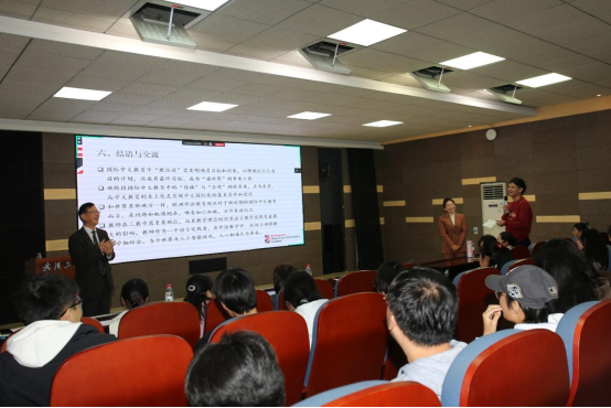 在交流环节,学院张艳梅教授和众多师生一起参与互动。张艳梅首先感谢张新生教授的精彩讲学和对学院国际中文教育研究的学术指导,尤其是对国家社科基金中华学术外译项目“《古文字趣谈》英译”(23WKGB010)团队的支持和帮助。现场师生围绕汉字教学创新、文化翻译、区域国别研究等话题与张教授进行了深入探讨,师生受益良多。
