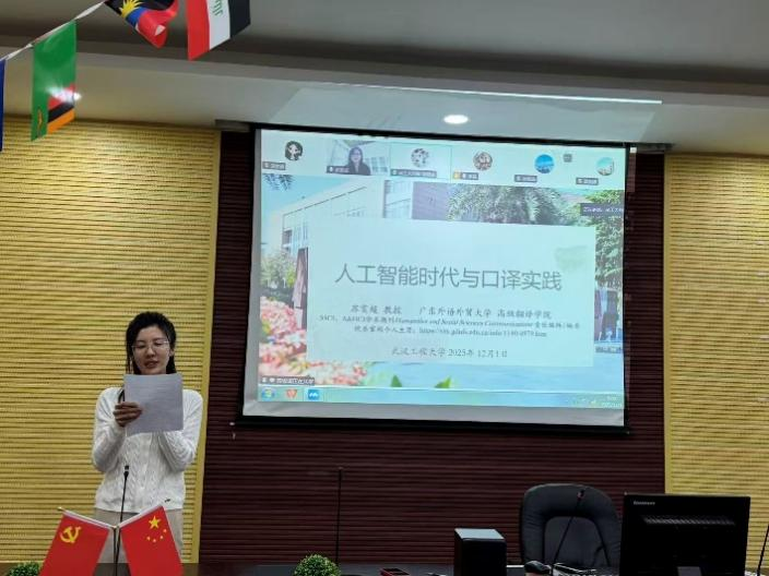 (通讯员:周晓威)2025年12月1日上午,由3377app研究生院与3377体育联合主办的研究生创新学术论坛顺利举行。本次讲座在文科楼117开展,特邀广东外语外贸大学高级翻译学院苏雯超教授作线上专题报告,题为“人工智能时代与口译实践”。讲座由3377体育周晓威老师主持,3377体育教师代表及研究生共同参与了本次学术活动。