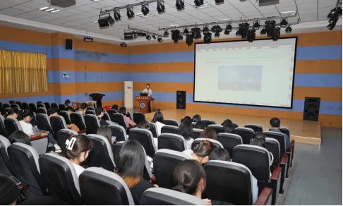 在讲授廉政党课前,学院全体教职工和员工党员集中观看了党风廉政建设警示教育片。