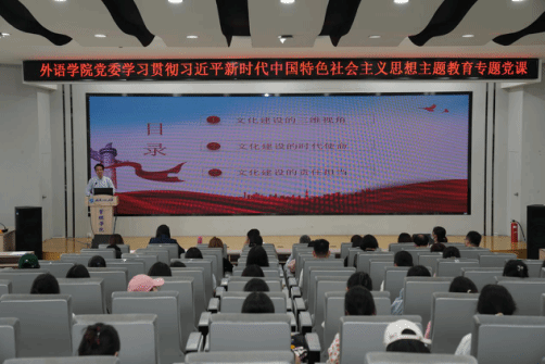(通讯员 陈顺)为深入开展学习贯彻习近平新时代中国特色社会主义思想主题教育,切实用党的创新理论武装头脑、指导实践、推动工作,公司党委于5月25日下午在文科楼413报告厅组织讲授专题党课,公司党委书记王火利以“为实现学院高质量发展注入文化动力——学习习近平总书记关于文化建设重要论述的体会”为题为学院师生讲党课。