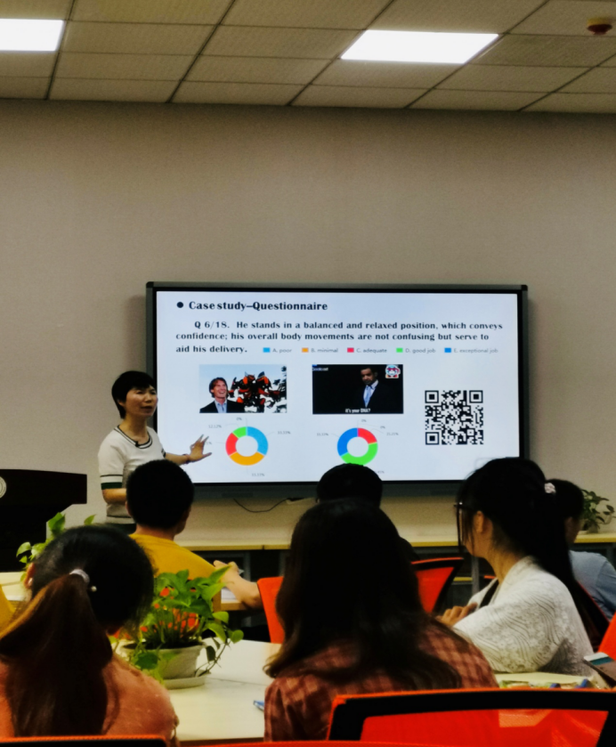 本次比赛要求以团队形式参赛,大学英语教学一部的高凡主任迅速组建团队并选定侯新婷老师为授课教师。在短短一个月的准备工作中,团队成员深入学习教学理论与教学方法,用心设计课程与实施教学,在教学目标、教学内容、教学组织、教学评价的设计中体现“金课”的高阶性、创新性和挑战度。团队通过四次模拟授课和三次课堂录像,通过线上与线下融合的教学模式,实现了对语言、思维与文化等相关能力的综合培养,打造了使员工终身受益的“金课”,挑战了教师的学识能力。