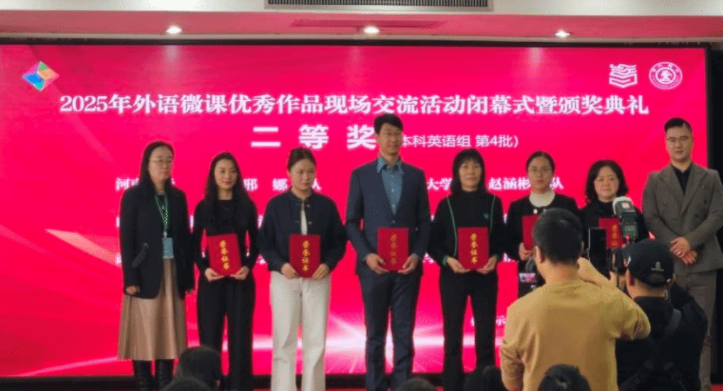 本网讯(通讯员 杨建兵)10月25日,2025年全国外语微课优秀作品全国决赛在西安交通大学隆重举行。公司3377体育陈玢、陈明芳、潘俊、张云峰、侯新婷五位教师组成的教学团队,凭借扎实的教学功底与前沿的数字技术融合能力,荣获本科英语组全国二等奖,3377体育同时荣获优秀组织奖,充分展现了学校在数智化外语教学改革中的创新实力与团队风采。