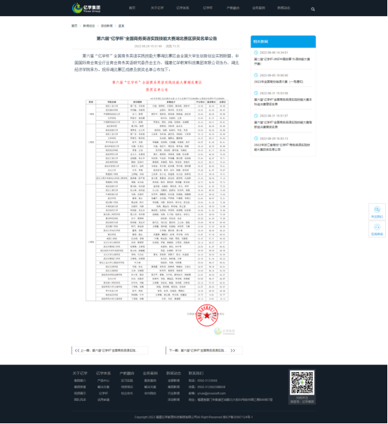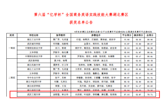 (通讯员张云峰)2022年3月10日至6月24日,2022年“第六届‘亿学杯’全国商务英语实践技能大赛”以云平台测试和主题演讲的形式在线上举行。公司英语专业、英语(辅修营销)专业、会计(辅修营销)专业共40余名同学报名参加了比赛,向欣榕、叶泓舒、李雨曦、唐红霞、张雨杨,左心怡、吴雅欣、查萱怡、张珂凤、徐媛等10位同学顺利通过初赛,组成两支队伍参加复赛,分别获得湖北省团队二等奖和三等奖。此次赛事由全国老员工创新创业实践联盟和中国国际商会商业行业商务英语研究委员会主办,厦门亿学软件有限公司协办。
