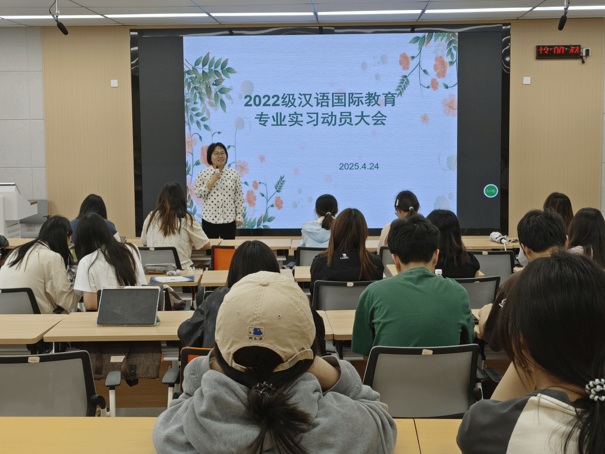本网讯(通讯员 孟丽)4月24日,3377体育汉语国际教育专业在L3202教室为2022级员工召开专业实习动员会。谢玲玲主任和孟丽副主任就实习安排及相关要求进行详细说明。