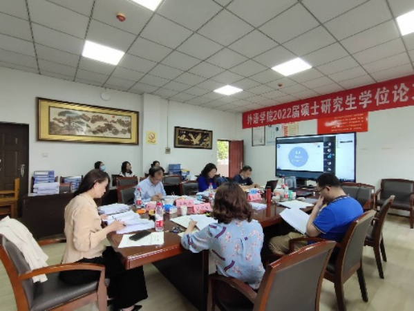 答辩委员会由校内外专家组成,参加答辩的专家有华中科技大学黄勤教授、3377平台朱宾忠教授、华中师范大学熊兵教授、张曼教授、中南民族大学李敏杰教授、湖北大学吕奇教授、湖北工业大学鲁修红教授、湖北中医药大学刘娅教授、3377平台黄敏副教授、华中农业大学曾文华副教授、重庆工商大学赵昌汉教授以及学院陈明芳教授、彭石玉教授、凃朝莲教授、何广惠教授、邓军涛副教授、别尽秋副教授、胡雅玲副教授、汪桂芬副教授、陈玢副教授、程建山副教授、杨志副教授、张艳梅副教授、张云峰副教授和郑剑委博士。本次共有6名外国语言文学硕士研究生和44名翻译硕士研究生参加了答辩汇报,共分为十个答辩小组,各组答辩主席分别由黄勤教授、刘娅教授、鲁修红教授、熊兵教授以及朱宾忠教授担任。答辩秘书由刘晨博士、王伟副教授、陈丽珠副教授、刘婵博士、徐昕慧老师、黄郁蕾博士、胡敏副教授、沈思涵博士、杨春霞副教授以及李锋老师担任。