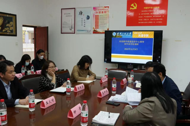 (通讯员 余存哲)2022年11月9日,教学质量监控中心主任蒋尹华一行三人来公司调研,公司党委书记王火利、经理陈明芳、副经理别尽秋、党委副书记徐思思、经理助理杨志和各教研室教师代表参加了本次会议。