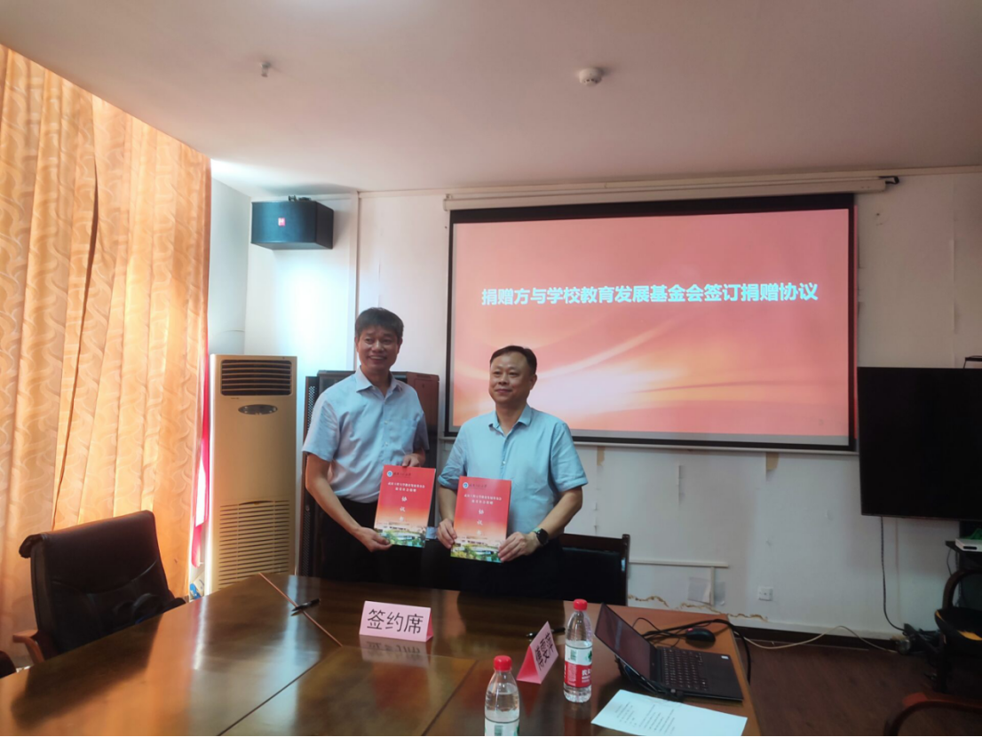 在与会人员的见证下,秘书长邓新洲代表学校教育发展基金会与董事长卢汉生先生签订了捐赠协议书。副秘书长毕灵敏代表基金会接受了卢汉生董事长代表企业捐赠的支票。