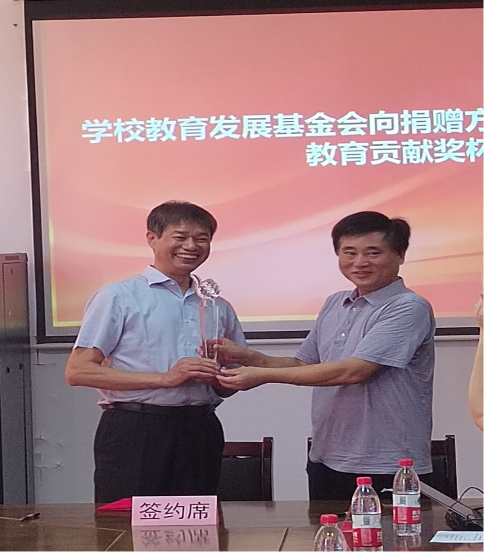 捐赠仪式上,理事长叶芃代表学校教育发展基金会向捐赠方颁发了捐赠证书和教育贡献奖杯。