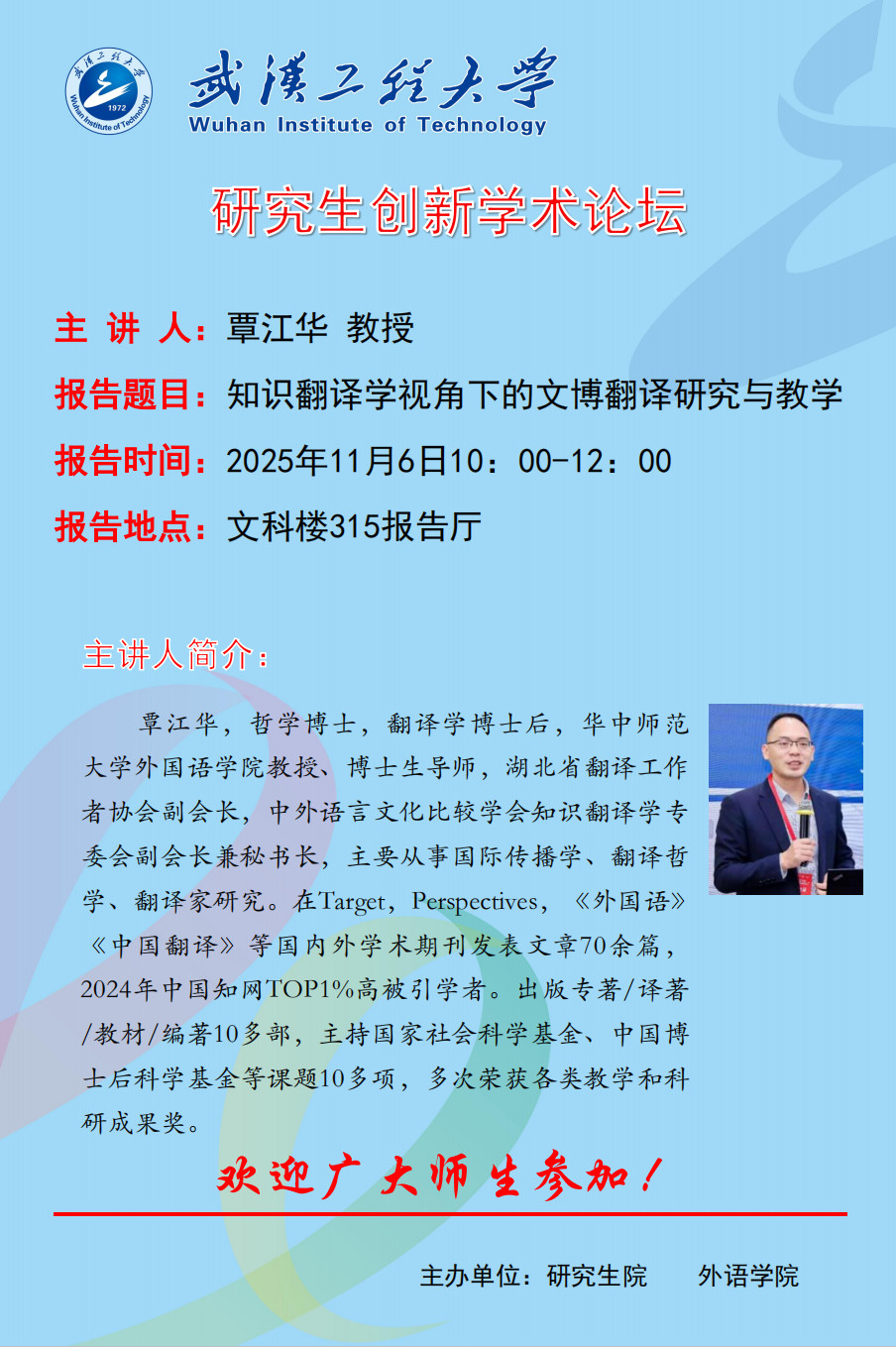下一篇: 【研究生创新学术论坛】翻译之难,难在何处?——以翻译大赛和出版为例