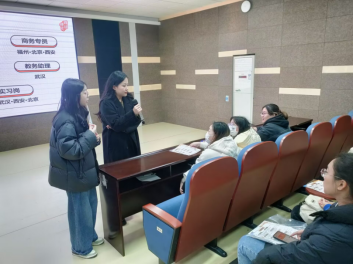 王芷璇为同学们介绍了译国译民集团独特的生态业务、寒暑假公益实习项目以及校企合作项目,讲解了集团主要业务类型。同时详细介绍了招聘岗位的要求以及福利待遇,解析了员工晋升路径,展示了公司未来发展空间。
