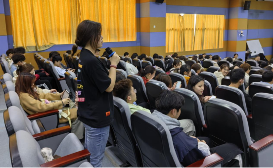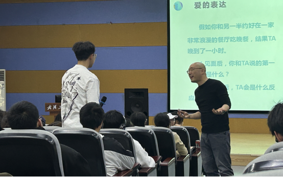 余老师从爱的语言、爱的表达和沟通误区三个方面向同学们介绍了如何进行有效的沟通与表达。他首先介绍了爱的五种语言:言语肯定、精心时刻、身体接触、服务行动和礼物赠送。在爱的表达部分,他介绍了父母状态、儿童状态和成人状态,以及由不同状态形成的“平行型沟通、交叉型沟通和隐蔽型沟通”三种沟通类型。接下来,余老师分享了“直接沟通与间接沟通”“及时沟通与延时沟通”“言语沟通与非言语沟通”“暴力沟通与非暴力沟通”四类沟通方式的对比,引导同学们学习更有效的沟通方式。最后,他介绍了男女沟通与需求偏好,以及亲密关系中的双重束缚。讲座过程中,余老师结合丰富精彩的影视剧片段,让同学们更好理解相关理论。同学们在讲座过程中积极互动、踊跃发言,分享自己的思考和观点。