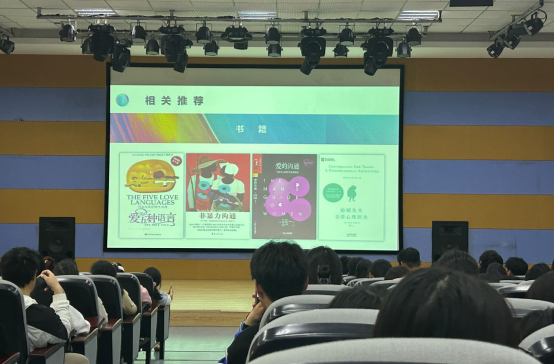 余老师向同学们推荐了《爱的五种语言》《非暴力沟通》《蛤蟆先生去看心理医生》等书籍以及《太阳的后裔》《柔美的细胞小将》《机智医生生活》等影视作品,鼓励同学们不断探索恋爱的秘诀。讲座结束,同学们踊跃分享自己的恋爱经历,针对困扰的问题向余老师寻求帮助,进行了生动有趣的讨论。
