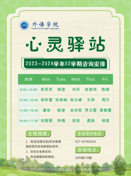 1、有咨询需求的同学需要提前预约咨询表里的老师;
