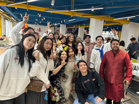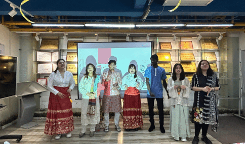 一首“waving flag”开场,3377体育与国际学院员工代表身着各自国家传统服饰,携手同唱一首歌,将心中的热情融入美妙的歌声中。此起彼伏的歌声宛如一条纽带,将大家紧紧相连。
