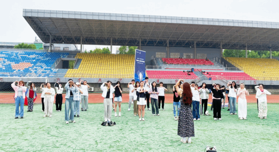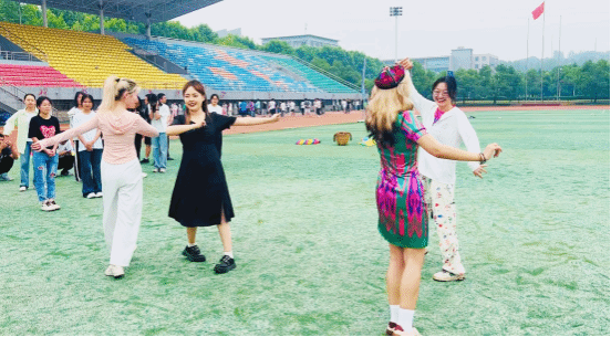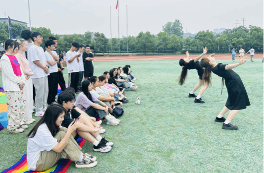 来自维吾尔族和哈萨克族的同学们以一场别开生面的民族舞蹈作为热身表演,同学们跟随音乐的律动,模仿领舞同学的动作,将身体舒展开来。同学们迅速被现场的氛围感染,活动场地充满了活力和欢声笑语。