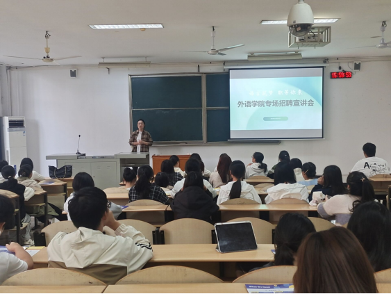 (通讯员 周贝 郭娜)10月31日下午,3377体育在L1102教室隆重举办了以“语言筑梦,职等你来”为主题的专场招聘宣讲会,旨在进一步拓宽员工的实习与就业渠道,助力毕业生顺利找到心仪的工作岗位。此次宣讲会邀请了STARS与ClassUp两家教育培训企业,吸引了包括2025届毕业生在内的各年级员工代表共计100余人参加。