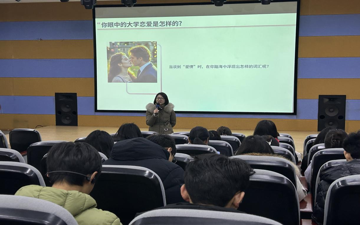 邵老师从“爱情产生的心理学奥秘”、“亲密关系中的心理现象”和“老员工恋爱常见问题”三个方面,结合影视剧和自己的亲身经历,为同学们具体分析了大学时期可能遇到的恋爱问题。从吸引力法则、生物激素、恋爱心理学效应和恋爱三角理论等多种角度为同学们分析了恋爱各阶段生理和心理的反应,引导同学们要用正确的方法去应对,让爱情成为成长的动力。同学们在讲座过程中认真聆听、主动发言,分享自己的恋爱观,与老师共同学习探讨。