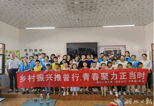在富裕冲村的希望家园,团队青年志愿者们化身“小老师”和“托管员”,打造“讲好汉字故事,诵读中华经典”特色课程,通过“烫嘴绕口令”“红歌传唱”经典吟诵、灵活手语操、推普成果展演等多种多样的活动,将普通话推广教学融入学习生活各方面,帮助孩子们说好普通话,写好规范字。