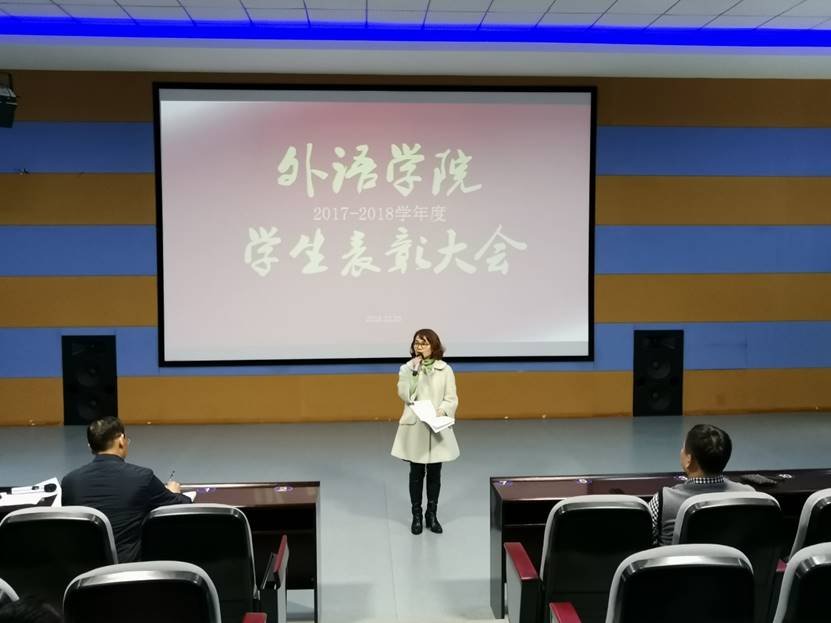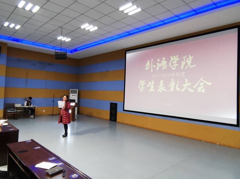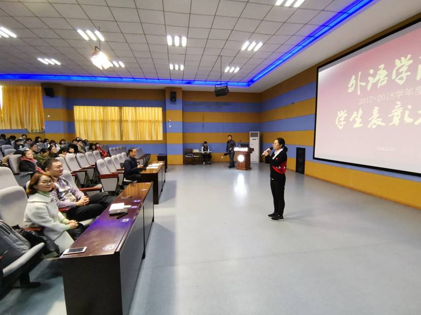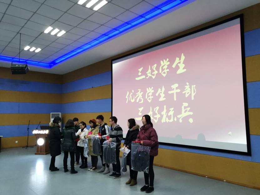 其次表彰了2017至2018学年院三好员工、优秀班干部、标兵、晨读先进个人及集体,由杨建兵经理宣读名单并颁奖。