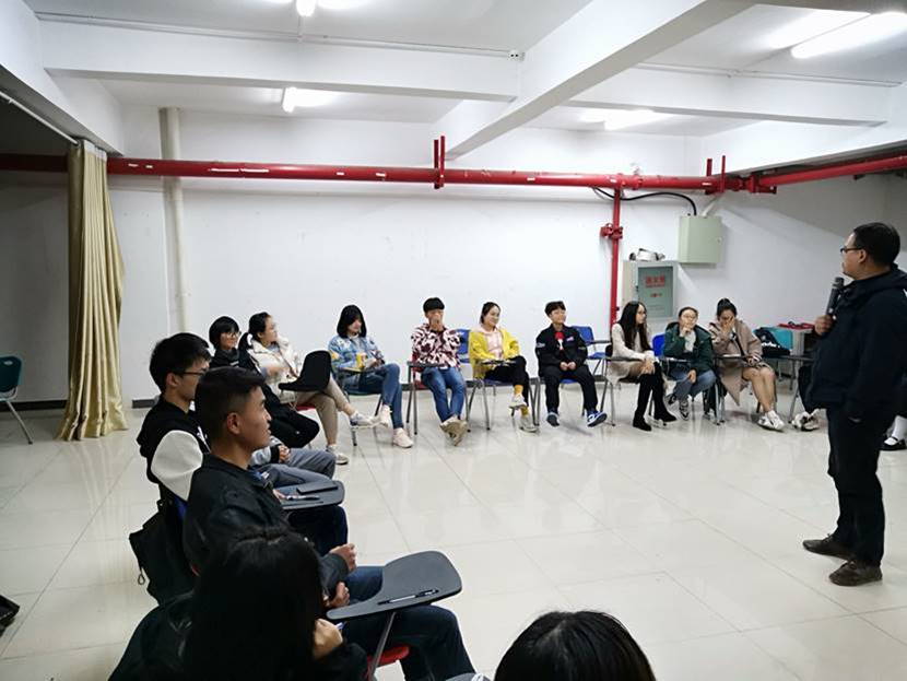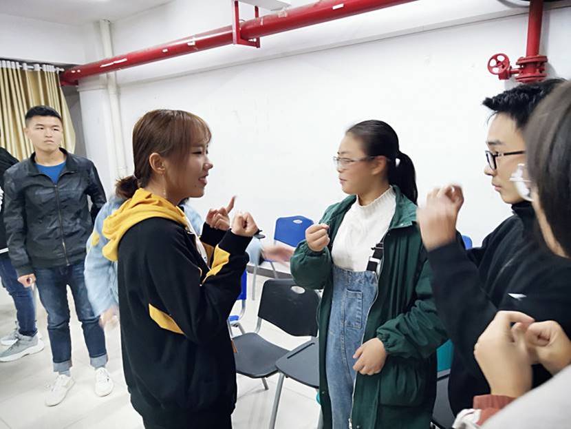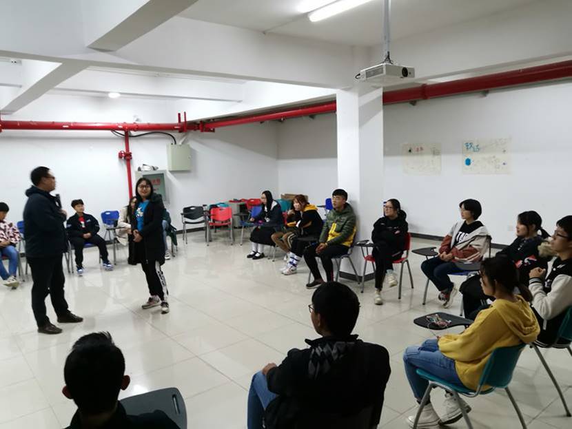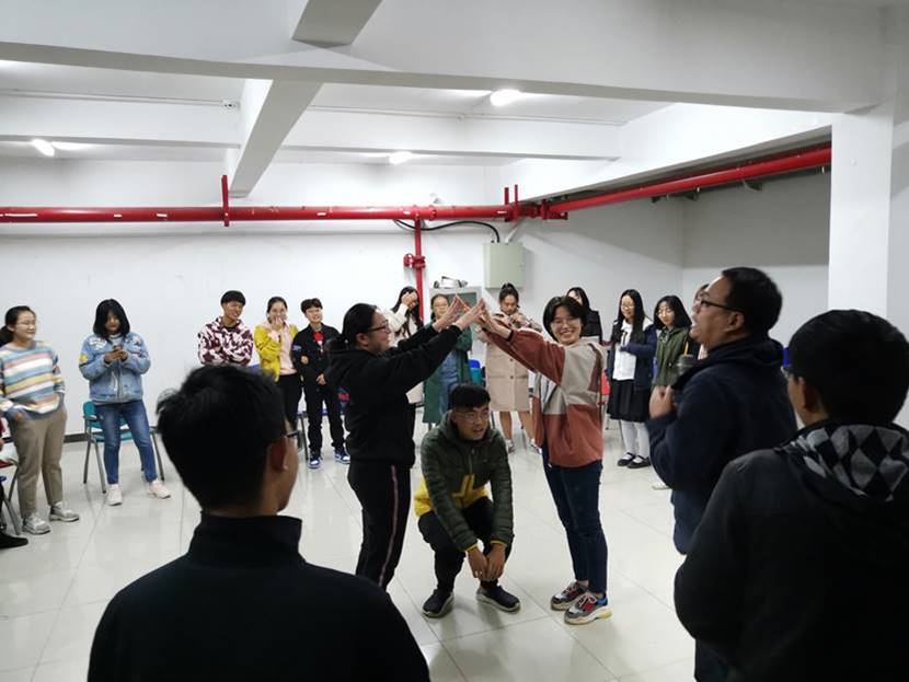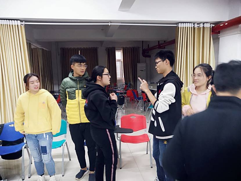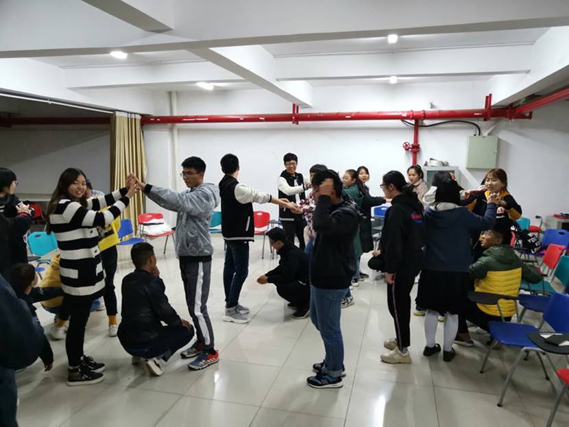 “大风吹”,“吹什么”,“吹穿黑裤子的人”一阵紧张的换位,一位同学被淘汰,第二个游戏考验着同学们的临时反应能力,大家围成一圈坐下,圈中一位同学站立发令,被点中特点的人需更换座位,期间中间的同学便可乘机抢位,留下多出的一人接受惩罚,继续发令。如果说“破冰”让场面活跃起来,那么这个游戏则让大家真正开始投入到活动中。