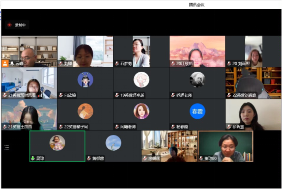 21级同学对英语方面课程提出建议,如希望商务英语阅读课程能学习更多商务内容,综合英语习题讲可以改为线上检查以增加课堂精度内容,英语阅读与写作课程希望增加一些互动环节等,闫曦老师和徐昕慧老师对同学们的问题做出解答,表示会增加互动,并会和课程组的老师们交流好的方法;张云峰老鼓励员工平时也要主动找老师沟通,交流。