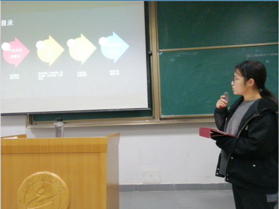 决赛现场,各个团队大致从项目介绍、创新性分析、财务分析、融资方式等几个方面进行讲解和展示,并由在场的观众按照项目创新性和团队展示风采两个方面进行1-5分打分(5分为满分)。
