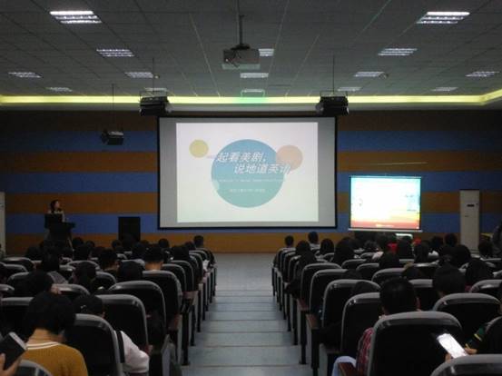 活动开始,外教进行自我介绍,获得大家的热烈欢迎。精彩的剧情让现场充满了轻松愉悦的氛围,同时3名外教也以幽默诙谐的方式为大家讲解其中的精彩亮点、地道语句、文化背景等,让大家在愉快中收获知识。
