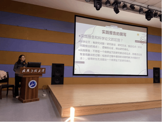 会议开始,汪桂芬老师应邀为全体毕业生做毕业论文专题辅导。汪老师从英语毕业论文(翻译实践报告)的写作要求、写作步骤和指导过程三个方面进行了讲解。汪老师首先明确了翻译实践报告与学术论文的不同之处,提醒同学们要确保翻译实践项目的选择与双专业领域的相关性。接着,汪老师重点围绕翻译素材的选定、翻译过程中的常见重难点问题,以及实践报告的撰写细节等方面进行了详细深入的解答,帮助同学们掌握翻译实践报告的思路框架和写作方法。最后,汪老师特别提出,同学们要正确认识ChatGPT等人工智能技术在翻译领域的应用,在确保译者主体性的同时,科学分析机器翻译技术的优势和不足,锻炼提升自身的翻译实践能力和理论分析能力。