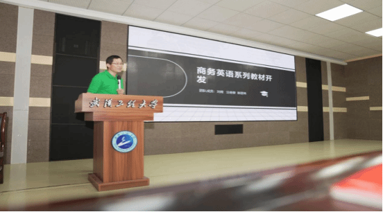 刘煜老师团队的项目是《商务英语系列教程编写》,其目的是满足公司“E+”人才培养模式的员工需求和全国外语类人才培养的新要求。他从商务英语读写教程编写内容、资料来源、编写团队和教学内容等方面进行了细致的汇报。