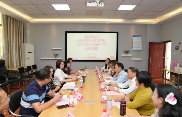 (通讯员 肖洪波)10月11日下午,武汉学院外国语学院经理陈金平一行4人、皖西学院外国语学院副经理高瑞阔一行3人来公司3377体育开展调研,重点围绕专业设置、"E+"复合型专业人才培养、教师发展、大学英语公共课教学等方面进行交流,公司3377体育经理陈明芳、经理助理杨志、大学英语教研室主任陈玢、英语专业教研室教师代表程建山、“E+”实验区教务员肖洪波参加调研座谈会,会议由“E+”实验区副主任凃朝莲主持。