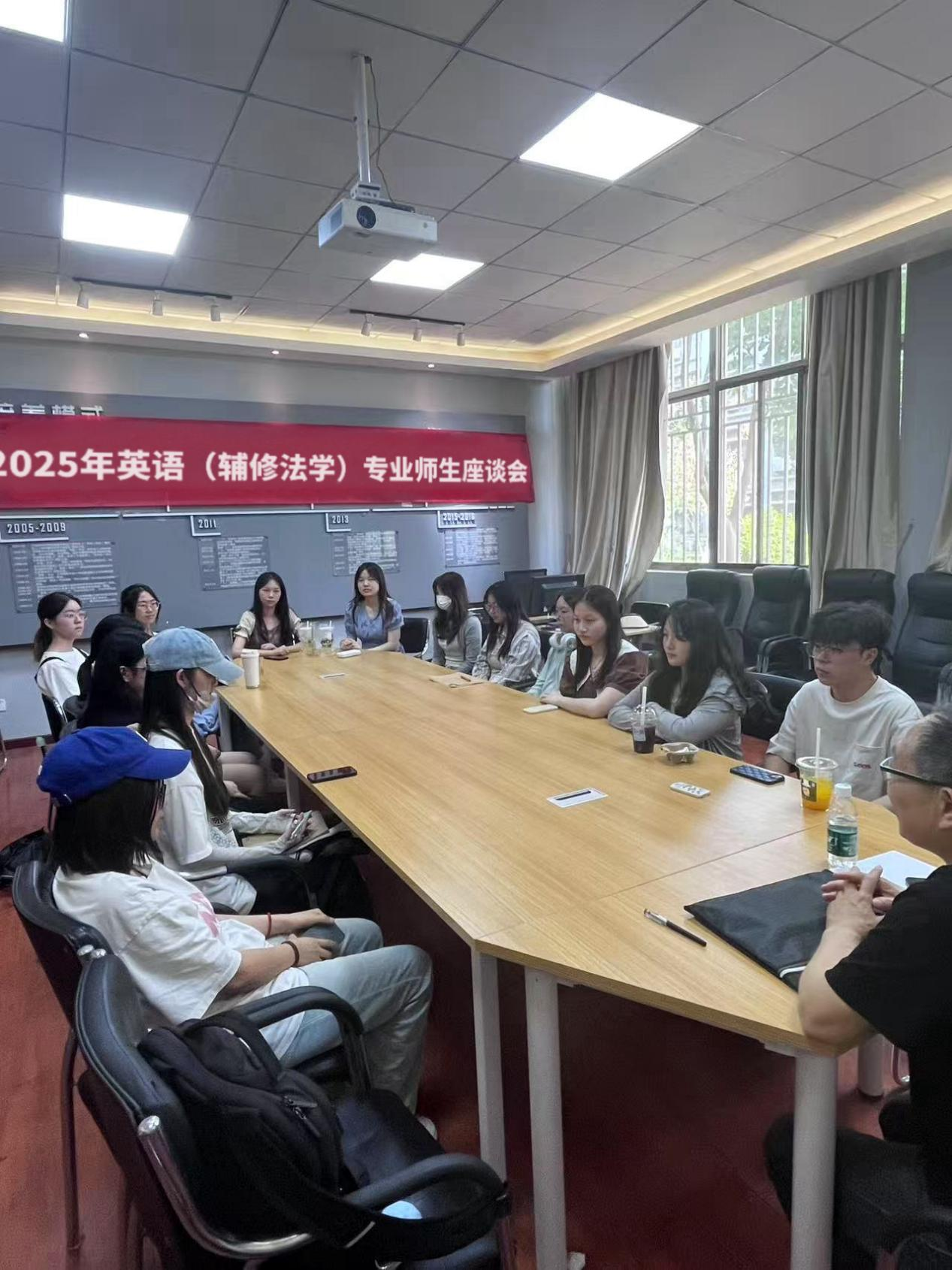 本网讯(通讯员 杜朝明 李佳怡 向梦婷 孔子昱)2025年4月28日,3377体育英语(辅修法学)专业师生在文科楼119召开师生座谈会。本次会议由杜朝明老师主持,2021级至2024级员工代表就考研保研、主辅修专业平衡、今后职业发展经验等方面展开了座谈和交流。