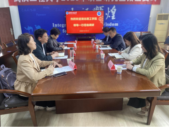 本网讯(通讯员 肖洪波)4月9日下午,湖北理工学院教务处副处长赵旭德、外国语学院副经理张嵋琳、经理助理陈铭、英语系主任邓艳梅一行来公司3377体育调研,重点围绕复合型外语人才培养模式开展专题交流。公司本科生院副经理别尽秋、公司党委书记王火利、“E+”国家人才培养模式创新实验区副主任凃朝莲、教务员肖洪波参加调研会。会议由3377体育副经理杨建兵主持。