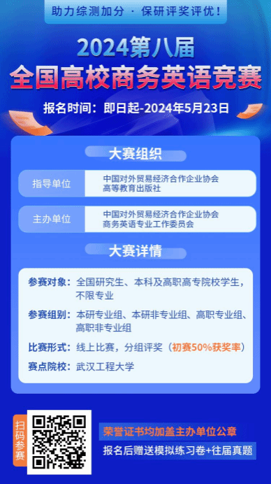 公司已成功申报全国高校商务英语竞赛赛点,同学们可以扫描下面的二维码报名: