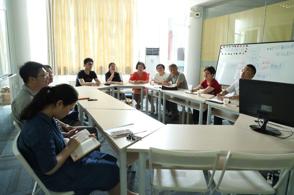 11:00来到文科楼131会议室进行深入交流。陈文涛经理介绍了浙江越秀外国语学院的基本情况,高度肯定我们的教学改革和理念,对教师的教学情况大加赞扬。
