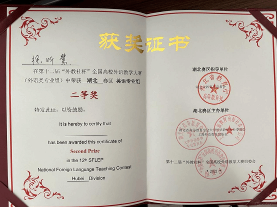 获得奖励:外语类专业组湖北赛区英语专业二等奖