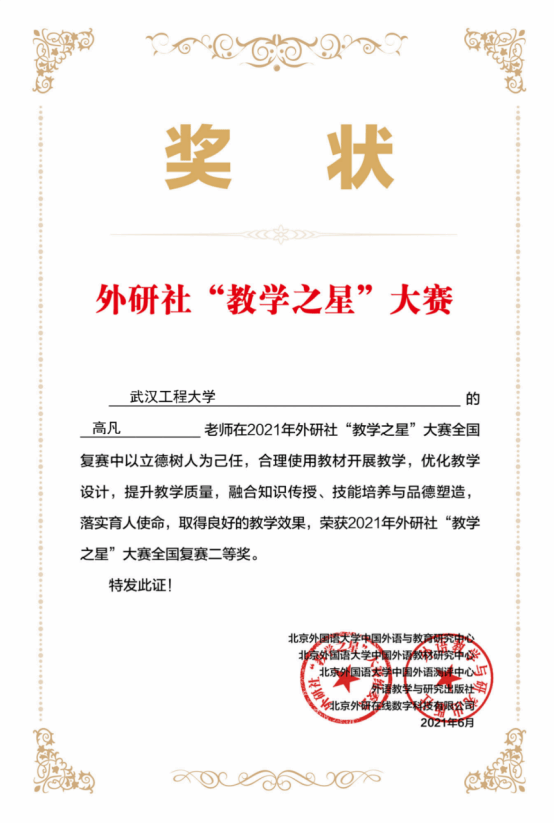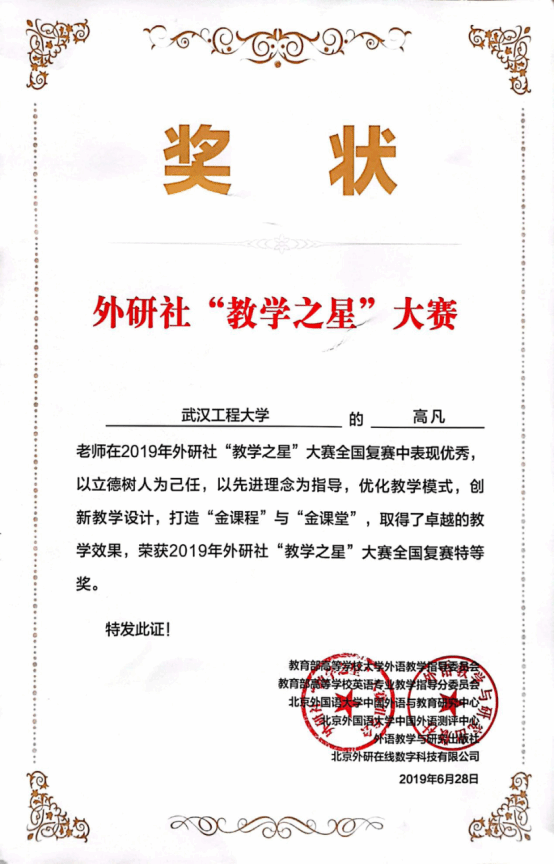 承担课程:大学英语; 研究生综合英语; 中华文化交流; 学术英语口语