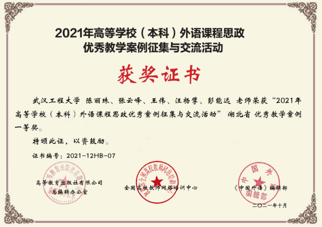 获得奖励:湖北省一等奖
