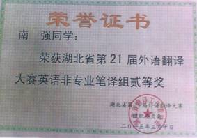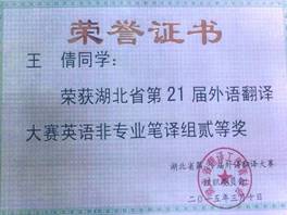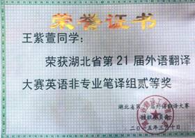 “21世纪杯”全国英语演讲比赛湖北赛区二等奖