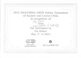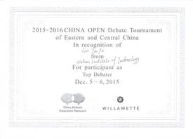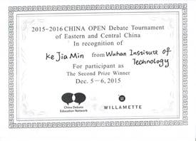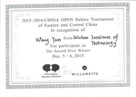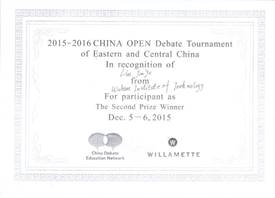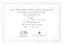 中国辩论公开赛(东部、中部赛区)二等奖