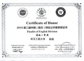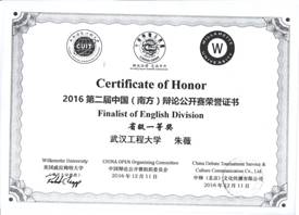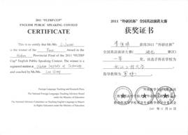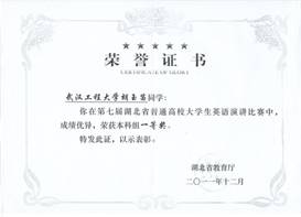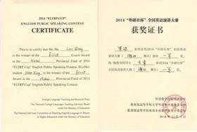 “外研社杯”全国英语演讲大赛湖北赛区一等奖