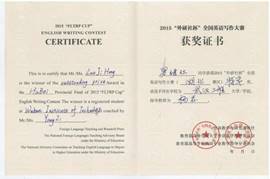 “外研社杯”全国英语写作大赛总决赛二等奖,湖北赛区特等奖