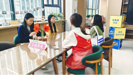 Upon finishing the organizational work, Ms. Liu Dan, the faculty advisor of the School’s Youth League Committee, and the head of Financial Port Community participated in a “charity tea talk”. The discussion, centered around the book crossing program, focused on strategies for strengthening future university-community partnership.